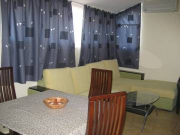 The property for rent is a beautifully furnished one-bedroom apartment, which consists of a living room with an open kitchen area, bedroom, bathroom and a spacious balcony with a view over Sunny Beach Bay.