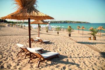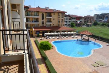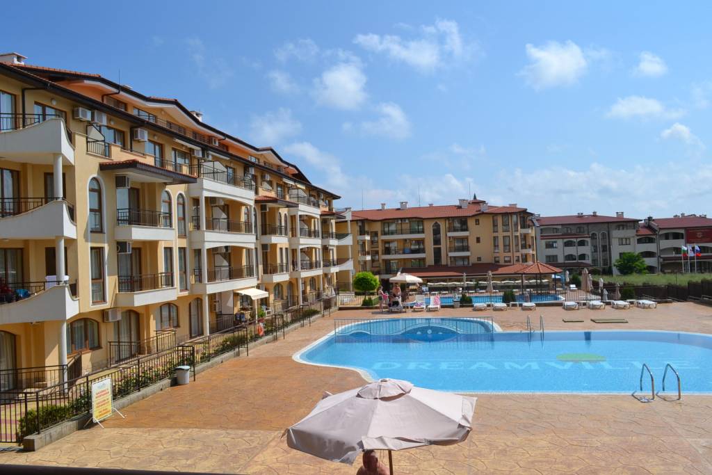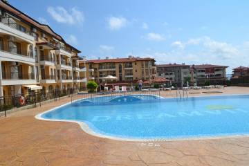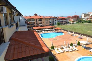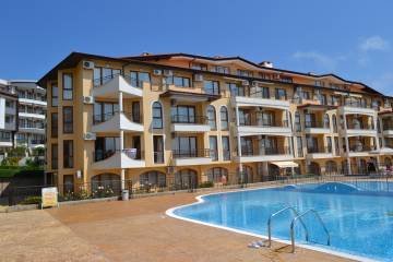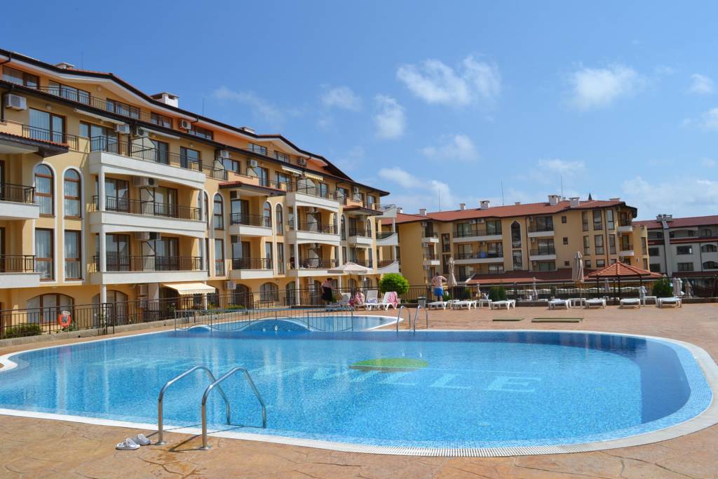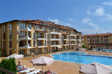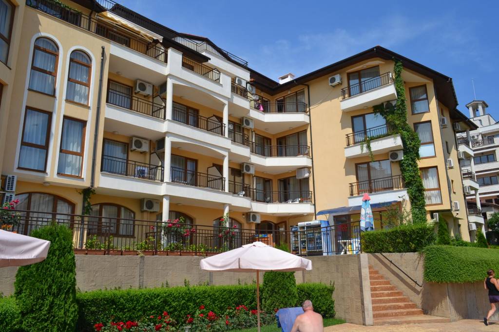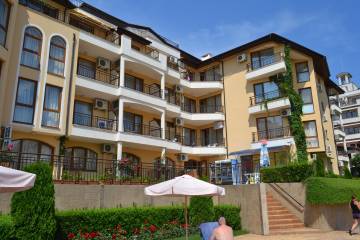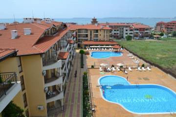 Aqua Dreams holiday complex***is located in the beautiful and quiet area between Sunny Beach and St. Vlas. Because of its specific location Aqua Dreams offers the unique combination of sea view in conjunction with the surrounding of fascinating rising green hills. It is situated only 50 meters from the coast line and approximately 500 meters from Sunny Beach.