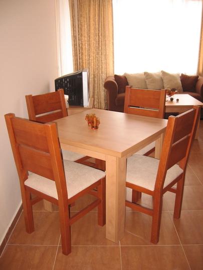 As amenities in apart-hotel Aqua Dreams there are: a restaurant with an open-air area, cafe-bar with pool view, reception, shops, parking lot, green areas.