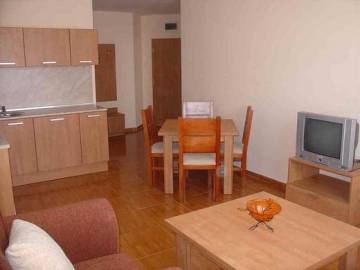The property for rent is a new modern and beautifully furnished apartment, which consists of a living room with a dining room and an open kitchen area, bedroom, bathroom and a balcony with a pool view.